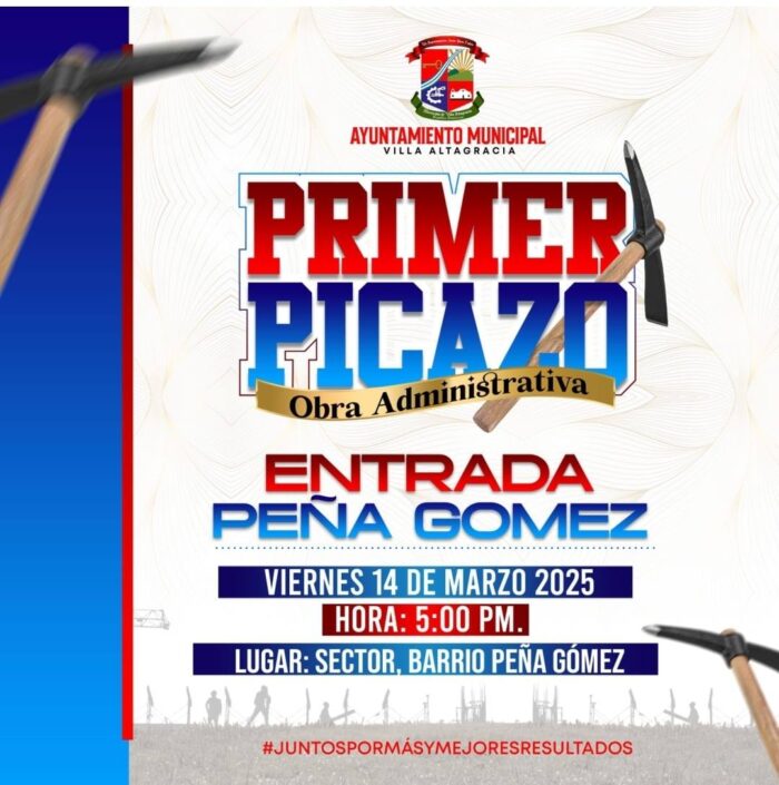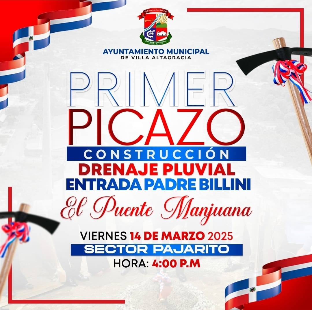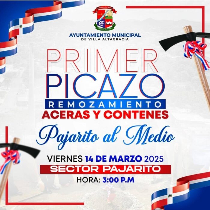 La alcaldía invitó a la ciudadanía, a participar el viernes 14 de marzo, al acto de los primeros picazos a efectuarse uno en el sector Pajarito al medio, para remozar aceras y contenes, un 2do picazo en la entrada Padre Billini, para construcción de drenaje pluvial, y un 3er picazo en la entrada del barrio Peña Gómez, para mejorar el acceso a esa parte de la población.