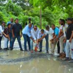 Alcalde y autoridades de Villa Altagracia dan primer picazo a la construcción de aceras y contenes del sector Km 40