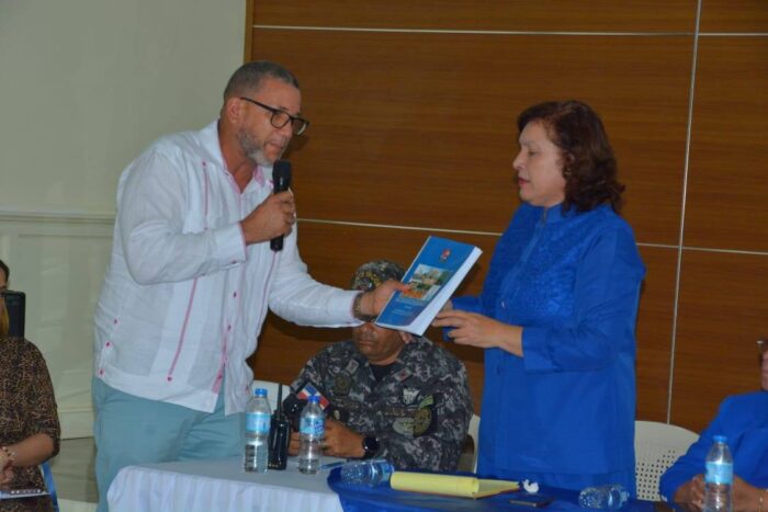 El alcalde José Miguel Méndez Restituyo (Luis Pavolo), quien estuvo acompañado por el presidente de la Sala Capitular, Willy Reyes, y la vicealcaldesa Miguelina Parra, instó a la comunidad a seguir luchando unidos por la seguridad de Villa Altagracia, también aprovechó la ocasión para entregar un ejemplar del Plan Municipal de Desarrollo de Villa Altagracia 2023-2026 a la Viceministra.